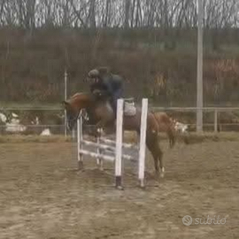 Femmina con documenti dell'anagrafe equina, sauro, 2020, 160cm. Sta gareggiando in categorie 80 ma ha le qualità per diventare un ottimo soggetto per categorie brevetto. Ha partecipato a concorsi ACSI e di country derby quindi può tranquillamente affrontare percorsi di cross country. Lavora anche bene in pjano. Brava in campo, in scuderia (tosatura, maniscalco), con altri cavalli e nei trasporti (sia van che trailer). Adatta a chi ha già un po' di esperienza. In regola con vaccini,vermifughi, Coggin's Test e ferrature.