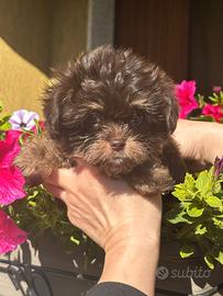 Bellissima femmina di Yorkshire mini colore cioccolato disponibile . Lei ha 2 mesi, con il primo vaccino, il microchip, libretto sanitario. Fatto sverminazione. Genitori nostri . Possiamo mostrare tramite videochiamata su Whatsapp o potete venire e vedere direttamente. Possiamo portare in qualsiasi città . Prezzo 1200 euro .