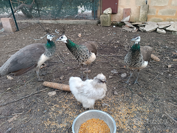 Salve, come da annuncio vendo 3 femmine di pavone (padre nigripennis) di circa 8 mesi nate da cova naturale: Prezzo singolo: 60 euro Prezzo in blocco: 150 euro Valuto anche scambi con animali di mio gradimento.