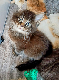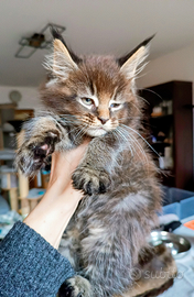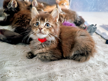 Allevamento ANFI, a Verona ha disponibilità di 2 cucciole femmine di Maine Coon Brown Tabby nate il 9 dicembre. Disponibili per metà marzo. Le cucciole sono figlie di una Campionessa Italiana. Consegnamo con pedigree, doppia vaccinazione, chip, test feci negativo. Test genetici ed ecocardio genitori negativi e visibili. Abbiamo diversi campioni in albero genealogico. Astenersi perditempo e persone che prendono informazioni senza nemmeno ringraziare.