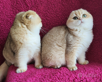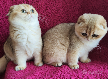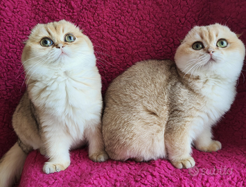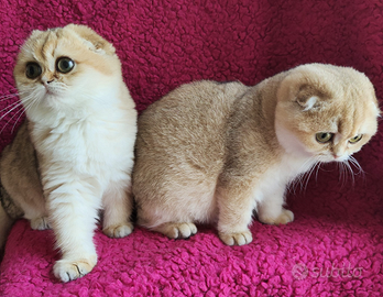 Vendo femminuce Scottish fold di colore golden .Eta' 3 mesi. Verranno cedute con libretto sanitario, pedigree ENFI, contratto di cessione e passaggio di proprieta'. Per info cell. 3208065683 WhatsApp.