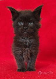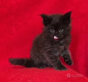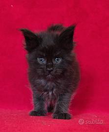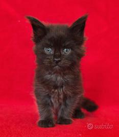 Abbiamo disponibile nel nostro allevamento judy questa bellissima femminuccia maine coon total black ....una strepitosa panterina !!!! dolcissima e molto giocherellona....viene ceduta al compimento del terzo mese con doppia sverminazione doppia vaccinazione passaggio di proprietà pedigree afsi kit cucciolo garanzia sulle malattie ereditarie e la nostra assistenza gratuita