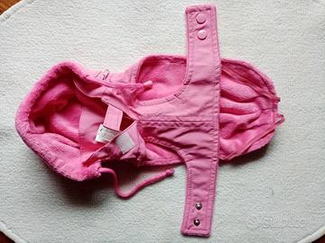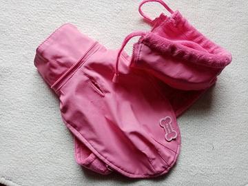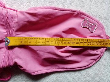 Cappottino imbottito con cappuccio removibile per cani di piccola taglia, marca Ferribiella, misure in foto. Usato pochissimo, un po' rovinato sotto il logo (vd foto)