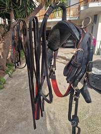 Vendo finimenti per pony in buone condizioni di ottima manifattura, di colore nero e rosso. Tolgo per inutilizzo