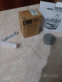 Vendo fontanella NPet. La fontanella è usata ma è funzionante e verrà consegnata con all'interno il kit per la pulizia (mai usato) e 5 filtri di ricambio. Come si può vedere da foto, l'bbeveratoio è provvisto di scatola.