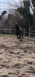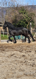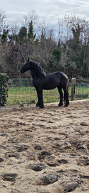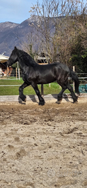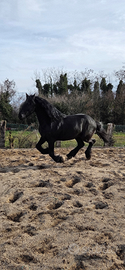 Docilissimo cavallo frisone di 11 anni, altezza 163 al garrese,bravissimo da terra,montato e in passeggiata,non teme nulla!