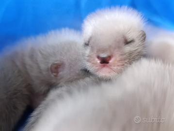 CUCCIOLI FURETTO Piccoli tesori cresciuti in casa, perfetti per convivere con la famiglia e altri animali. Disponibili da ora e da maggio - tutto incluso nella cessione: Vaccinazioni Microchip + Anagrafe Sverminazione + Vet certificato + Documento cessione Linee pure, pelo corto/angora/mezz'angora, colori vari. No riproduzione (obbligo di sterilizzazione!). Caparra per bloccare il tuo! Scrivi in privato per info/foto ??