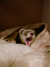 È un bellissimo furetto maschio di 8mesi. Colorazione tipica, buono, dolce, giocherellone, curioso e di tanta compagnia.