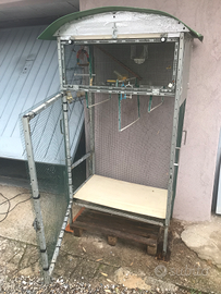 Voliera /gabbia che puo stare anche l "esterno istruttura in ferro zincato e reticolato di 1 cm con apertura laterale e frontale molto comoda per pulire gli escrementi dimensione 50 cm 110 cm x 130 cm in altezza