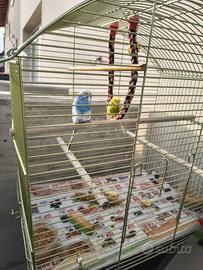 Vendo tutto: gabbia (manca un pezzettino ma è usabile) e tutto il contenuto + il mangime per un po' + ovviamente le due cocorite in foto ?? Disponibile da subito. Prezzo trattabile. Contattami anche per telefono.