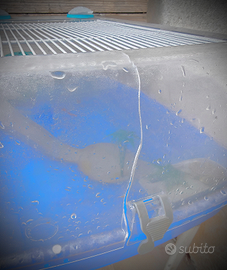 vendo gabbia con in regalo la tartaruga d'acqua con 2 anni la gabbia è buona l'unica cosa e la crepa come si può vedere un foto , ma non influisce su nulla, possiamo vederci di persona e accordare un incontro