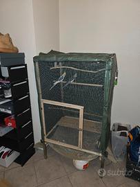 Vendo gabbia fatta artigianalmente 66x72x120 voglio solo recuperare i soldi che ho speso per farla, tiene l apertura sopra con cerniera la porticina per il nido e la porta davanti da come si evince dalle foto legno comprato nuovo piu rete zincata completa di telo