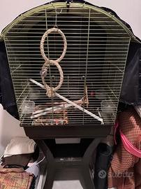 Gabbia per pappagallo usata per un lori arcobaleno con copertura fatta su misura