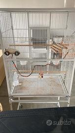 Vendo gabbia per uccelli adatta a Pappagalli, Inseparabili e Calopsite di grandi dimensioni con piedistallo staccabile totalmente in metallo. Può essere messa sia da Interno che da Esterno di colore Bianco. Dimensioni 62x43x136 cm. Completa di abbeveratoio, piedistallo, giochini e accessori vari