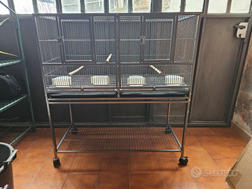 Bellissima e funzionale gabbia voliera con divisorio separabile con piedistallo per calopsiti, kakariki, cocorite, inseparabili ecc.