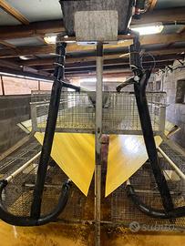Impianto acqua a caduta con vaschetta polmone a galleggiante, abbeverate a tettarelle.