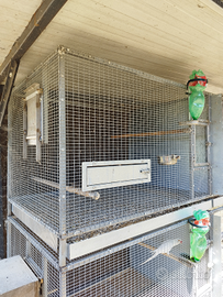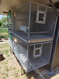 Cedo due gabbie cova zincate da 2.40 metri con separatore per trasformarle in due da 120 complete di mangiatoie girevoli, sportelli per applicazione nido e vassoio in lamiera zincata