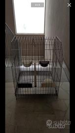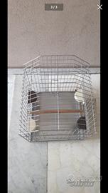 Gabbietta per uccelli con mangiatoie/bevitoie e trespolo, in acciaio no plastica Misure: base 42x42, altezza 56