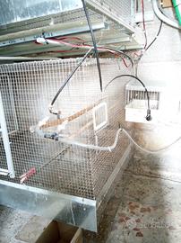 Gabbione x uccelli rete inox maglia 12x12mm,al centro possibilità di inserire divisorio il gabbione è costituito da da due gabbie singole collegate quindi è possibile staccarle o dividerle.La griglia di fondo è removibile,misure cm 203x69xh62