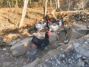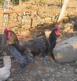 Bellissimi galletti in purezza di razza Australorp, giovanissimi e già belli grossi, nati in primavera/estate. Sono disponibili nella colorazione nera, blu e splash. Abituati alle persone e a vivere in un pollaio aperto di montagna.