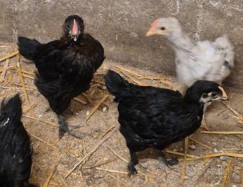 Galletti di 2 mesi di razza Marans. Uno bianco perla/ 2 blu/neri 1 grigio.