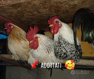 Cedo, per esubero, splendidi, giovani galletti. Rustici e ruspanti, nati e cresciuti da mamma chioccia. Colori sgargianti, crestine di vario tipo. Simpatici e vanitosi. Taglia medio-piccola. Per amatori e pollai felici. No commercio, no gabbia, no pentola!