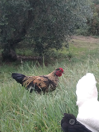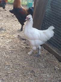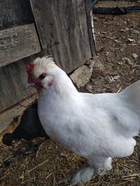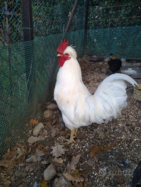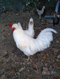 Cedo galletti ornamentali simil moroseta bianchi, 1 livornese bianco e 1 colorato