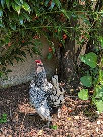 Vendo galletto di razza Sebright (razza ornamentale inglese). Colorazione argento orlo nero. Abituati a stare all'aperto e nel pollaio.