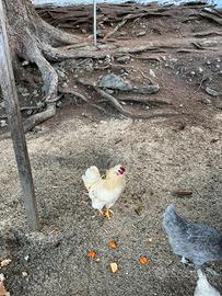 Vendo bellissimo galletto bianco di 6 mesi, sano e molto vivace. L'animale è cresciuto all'aperto con alimentazione naturale, è in ottima salute e ha un piumaggio perfetto. Ideale come riproduttore per il pollaio.