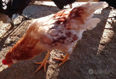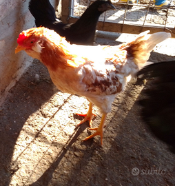 Vendo gallo di 6 mesi, con cresta a pisello e piumaggio bianco e rosso . È già attivo con le galline, pronto alla fecondazione e in salute.