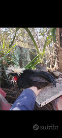 Disponibile galletto olandese nero con ciuffo bianco. Giovane nato la primavera scorsa. Oppure scambio con femmina di fagiano. Ornamentali polli anatre.
