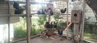Cedo galli e galline tutti presi in blocco 9€ CAD. Razze Phoenix collo oro, brahma picchiettata e maschio a maglie nere ecc. Per inf contatt