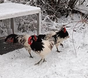 3 galli Lakenfelder, età 5 mesi, scambio con galline di qualsiasi razza, solo per amanti degli animali. Purtroppo sono in sovrannumero.
