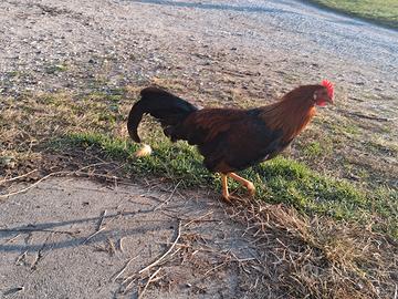 Vendo tre galli di razza livornese collo oro nati a fine luglio 2025. Vendo a 30 euro l'uno.