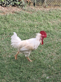 vendo giovani galli nati quest'anno, tutti ibridi tra diverse razze di galline ovaiole (livornese, amrock,...) disponibili tutti bianchi o maculati. vendo a 20? l'uno oppure scambio con altri animali da cortile (galline, anatre, quaglie, conigli...)