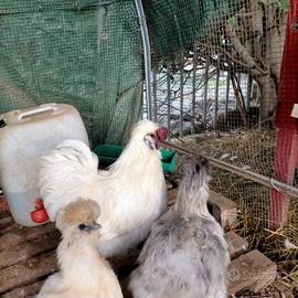Vendo gallo moroseta adulto, bellissimo piumaggio e un bravo riproduttore. Ad amanti della razza e solo per vita in giardino. Inoltre ho anche un giovane galletto sempre bianco che cedo a 10€