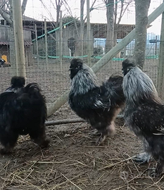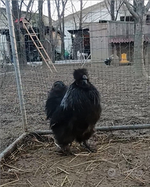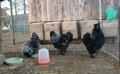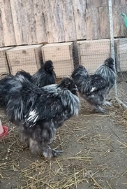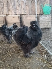 Scambio, con un sacco di mangime, splendidi galli Moroseta puri, neri/collo argento.
