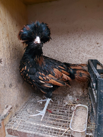 Bellissimi galli padovana. Uno camoscio di 8 mesi ,l'altro nero orlo oro di 5 mesi .Disponibili per esubero