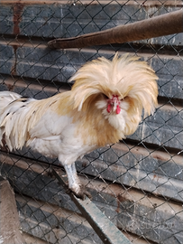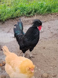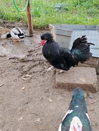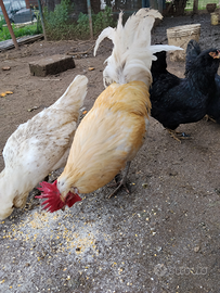 Galli abituati a stare insieme e abituati a mangiare di tutto (mangime , farine, scarti di casa e erba)