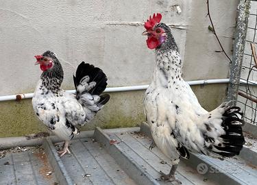 Vendo o scambio due galli di razza Ancona nana varietà splash, giovani e in ottima salute.