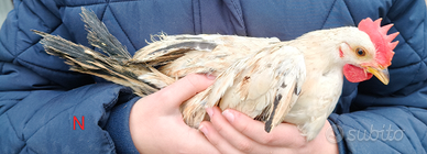 1 gallo Chabo chiaro molto docile di due mesi e mezzo. 1 gallo 10 euro.