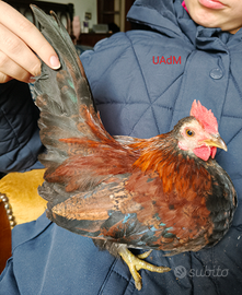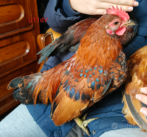 Vendo o scambio galletti Serama: il primo testa bianca di tre mesi, ideale da addomesticare a €5, UAdM di 6 mesi è taglia piccola solo 323g a 15€, U11dV di 6 mesi 405g a 10€, AdT di 4 mesi 475g a 10€, Dalco e Toe sono chiari bianchi e fulvi 420 e 474g di tre mesi e mezzo a 15€ ognuno, N è bianco con coda nera 365g di 3 mesi a 15€, 2dF splendido millefiori di 9 mesi già riproduttivo 582g a 15€. Se si prendono in gruppo il prezzo è scontato.