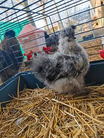 Vendo gallina amrock nata a ottobre 2025, SOLO ABBINATA AD UNO DEI MIEI GALLI IN FOTO. Sono disponibili un moroseta bianco, un moroseta splash, un pulcinotto grigio blu splash (forse femmina) e un Chabo nagasaki, tutti giovani. Prezzo non trattabile NON SPEDISCO NON TRASPORTO