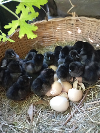 Vendo: una Gallina Cemani (50 euro) con pulcini piccoli (10 euro a un pulcino). Pulcinotti e pulcinotte Cemani, hanno circa 3-4 mesi ( 25 euro ).