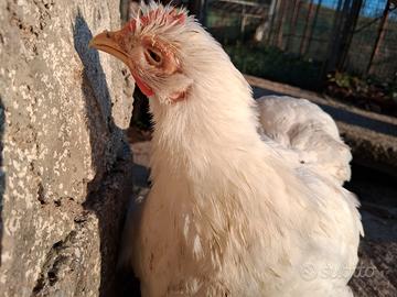 Vendo gallina cocincina nana colorazione bianco di quasi 1 anno sta ricominciando a fare le uova. È quasi qeca dal occhio sinistro