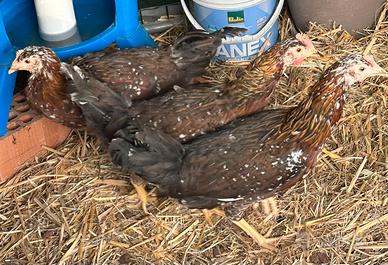 Vendo 6 Galline Millefiori di 6 mesi, belle, sane e vivaci. Preferisco venderle tutte assieme. Il prezzo è trattabile se acquistate tutte assieme. Prezzo per una sola gallina 30 euro