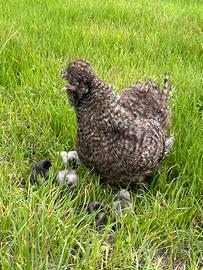 Cedo gallina moroseta perche ne ho troppe.. Gallina moroseta mottled grigio spalviero! (Compresa di 3 pulcini moroseta) Ottima gallima da chioccia! Prezzo 50 (poco trattabile)con i tre pulcini compresi di un mese e mezzo.