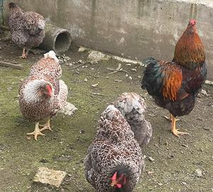 galline ornamental Amrock oro orlate nere,blue e splash e uova feconde .