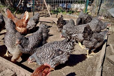 Vendo galline Barrate di 130 giorni, sane e robuste, allevate con cura e alimentazione naturale. Ideali per chi vuole iniziare subito la produzione di uova.Ottime ovaiole Resistenti e abituate all'esterno Ideali per allevamenti familiari e agricoli