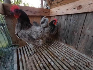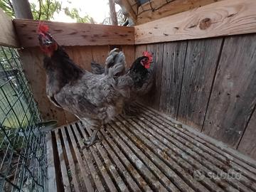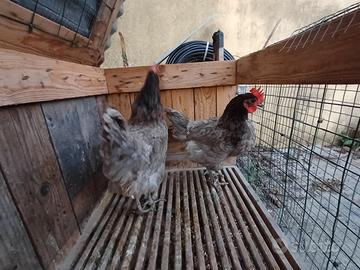 Cedesi coppia di galline incrociate in backcrossing con 75% di sangue australorp blu. Cedo per termine progetto Nate a marzo 2025 dunque in piena deposizione. No perditempo. Consegna a mano a Grottaminarda Cedo entrambe recupero spese per cibo a 25 euro entrambe. Preferisco contatto telefonico.